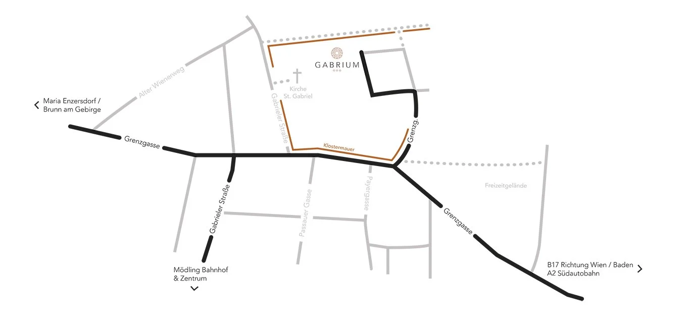 Von Wien oder Graz kommend: Ausfahrt Mödling nehmen, bei der Ampel links auf B17/Triester Straße abbiegen, dann an der nächsten Ampel rechts Richtung Mödling abbiegen. Der Wiener Straße folgen bis zum Kreisverkehr, dort die erste Ausfahrt nehmen, weiter geradeaus, nach 700 Metern die dritte Straße/Einfahrt rechts nehmen.